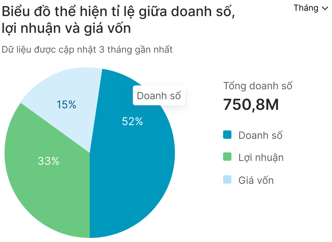 Biểu đồ thể hiện tỉ lệ giữa doanh số, lợi nhuận và giá vốn