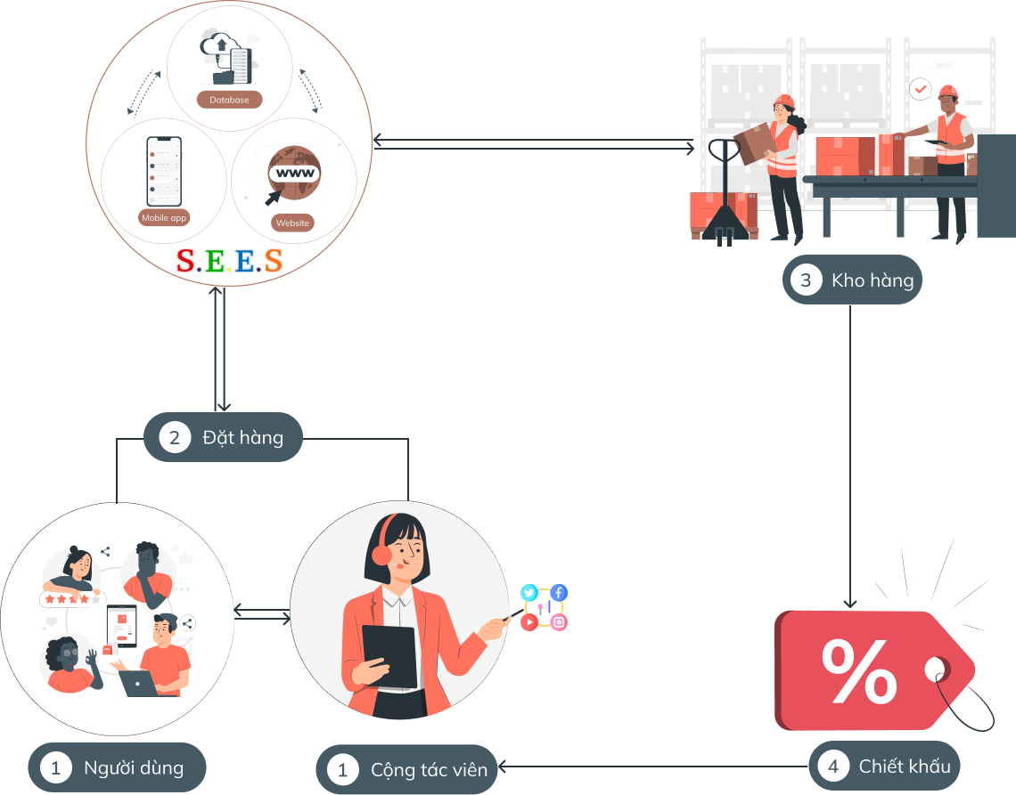 SEES cung cấp một sàn thương mại điện tử B2B2C, vài trò nhà cung cấp là nhà cung cấp online