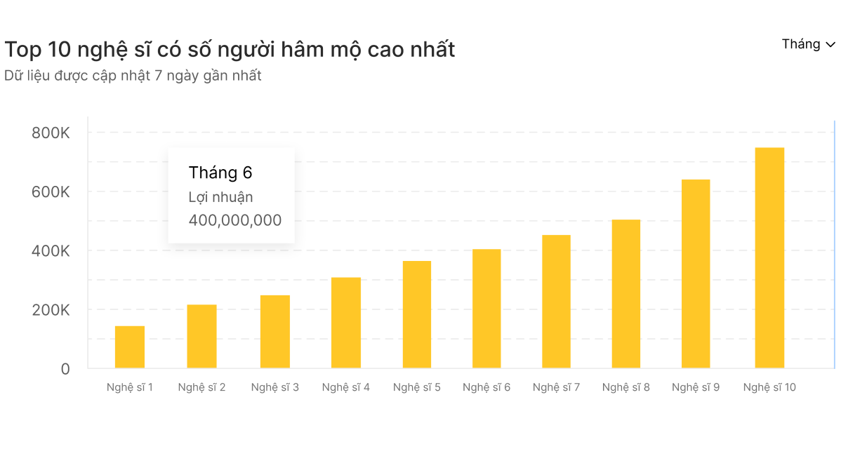 Biểu đồ báo cáo TOP 10 nghệ sĩ có lượng người hâm mộ cao nhất