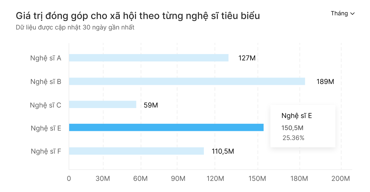 Biểu đồ cáo cáo giá trị đóng góp cho xã hội theo từng nghệ sĩ tiêu biểu