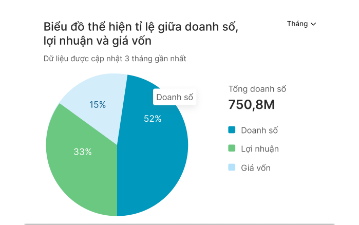 Biểu đồ thể hiện tỉ lệ giữa doanh số, lợi nhuận và giá vốn