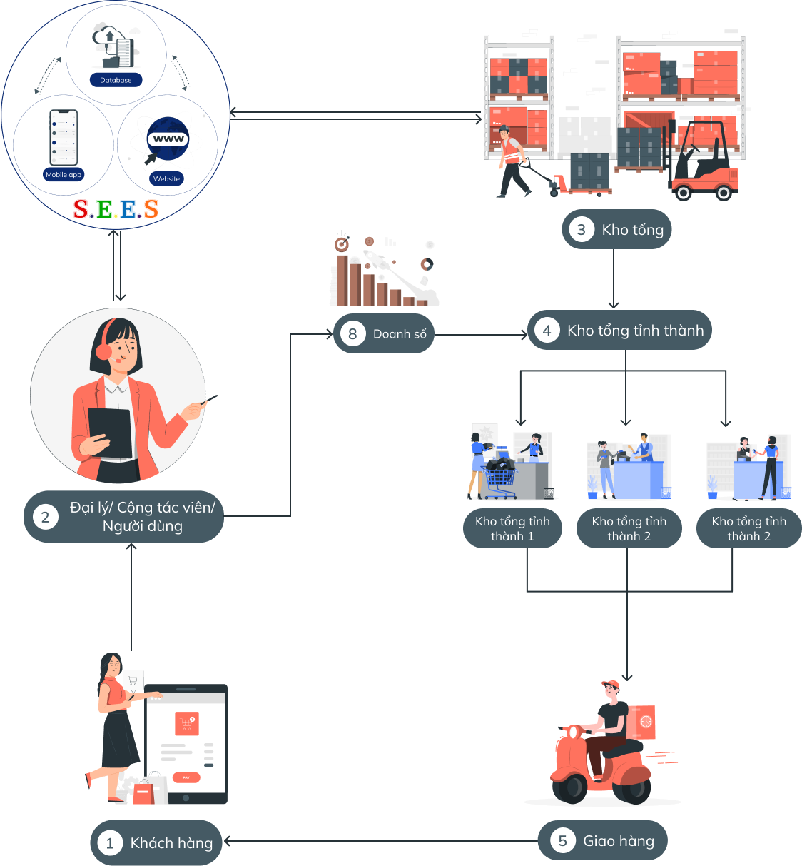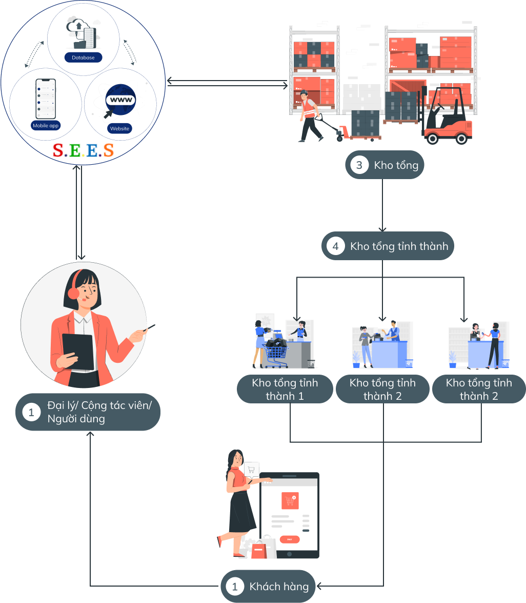 Là giải pháp bán hàng thương mại điện tử B2B2C chủ doanh nghiệp tạo ra nhiều điểm bán hàng chính là các nhà phân phối (NPP) của mình, mỗi NPP quản lý bán hàng trực tiếp trên ứng dụng, đồng thời tạo ra hệ thống bán hàng cho khách sỉ/ lẻ ngay trên đó, chủ mô hình có thể theo dõi tình hình hoạt động của mỗi NPP trên hệ thống, từ đó có thể đưa ra các giải pháp hỗ trợ NPP bán hàng tốt hơn. Ứng dụng cho phép khách lẻ truy cập nhưng đóng vai trò hỗ trợ NPP có thêm đơn hàng trên nền tảng của chủ mô hình kinh doanh. Dựa vào ứng dụng công nghệ mà có thể quản lý được tất cả hoa hồng phi tập trung ( kho hàng mỗi NPP đang nắm) ở bất kỳ nơi đâu, từ đó chủ động điều phối và đưa ra các chiến lược phù hợp.